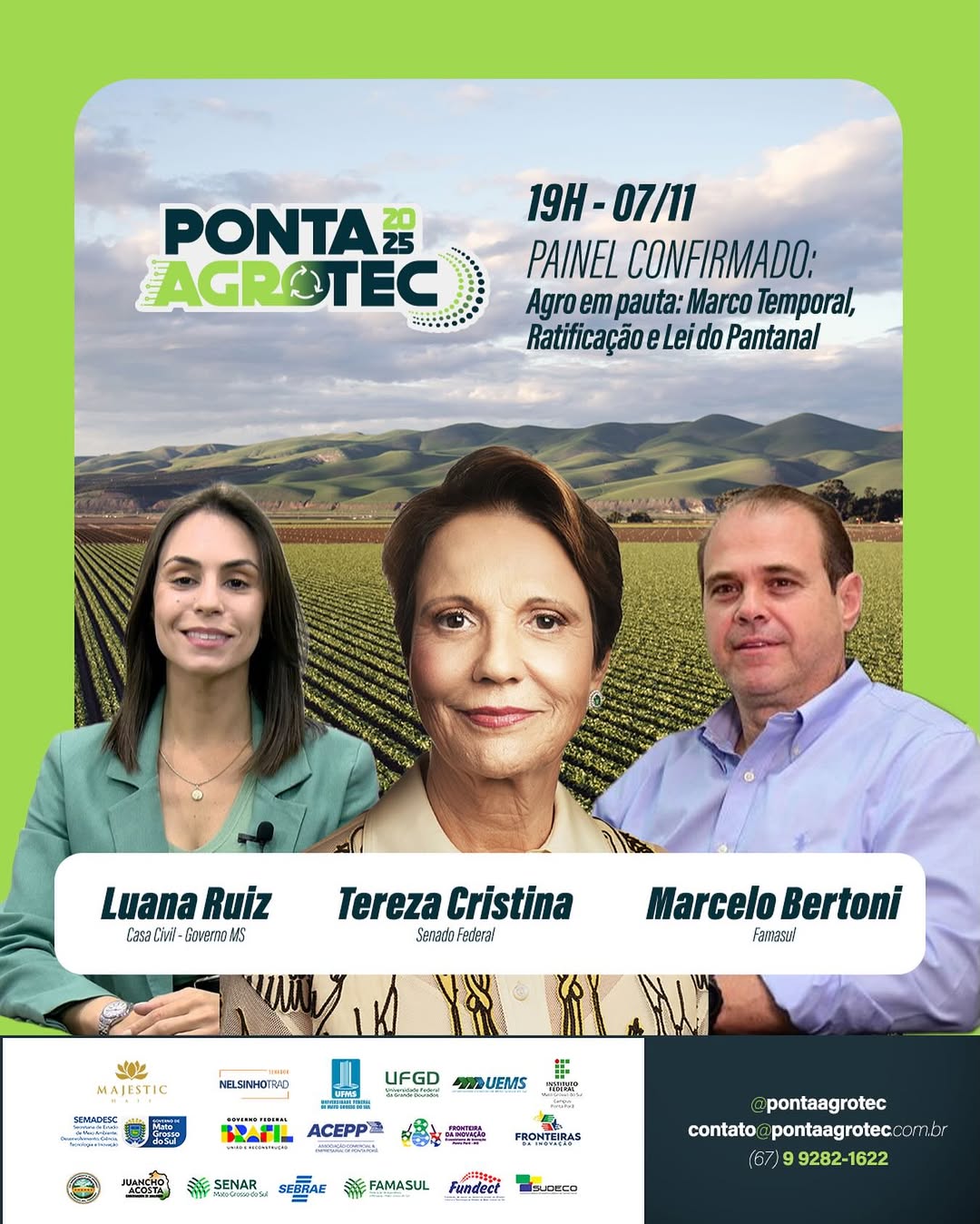 Tereza Cristina, Luana Ruiz e Marcelo Bertoni, estarão na Ponta Agrotec 2025